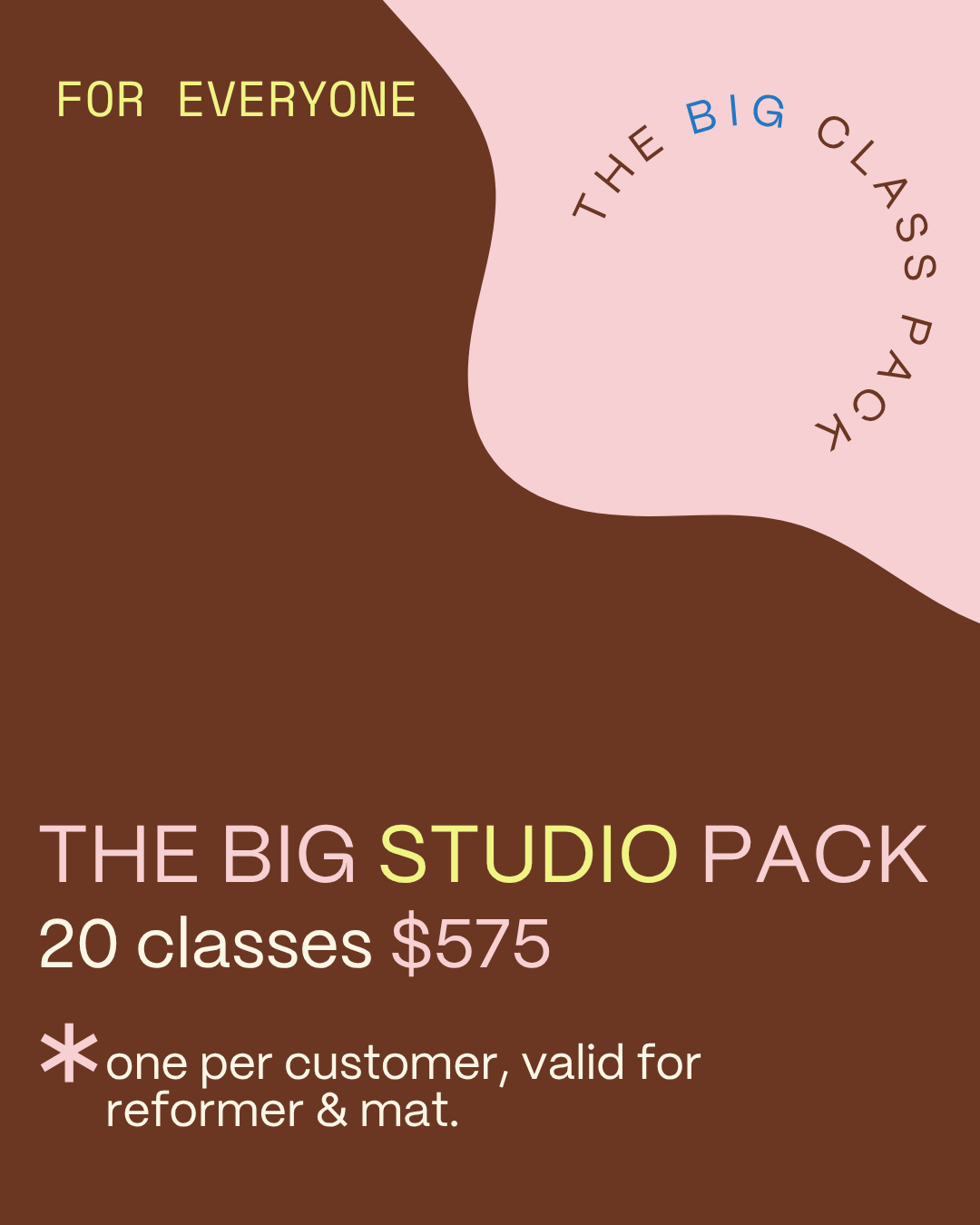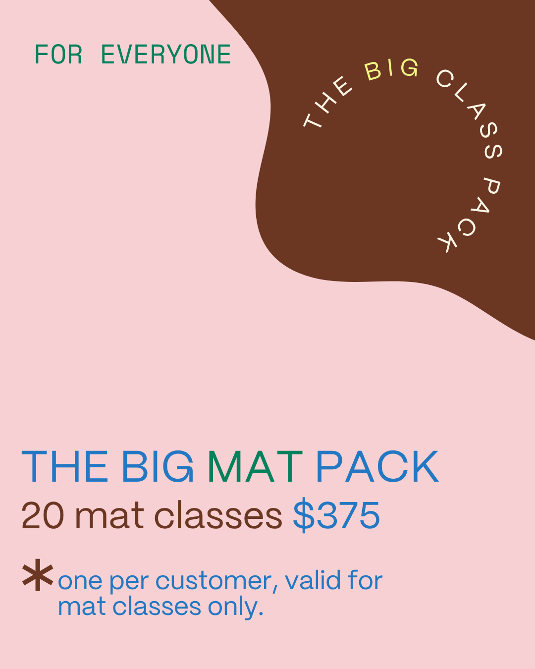 20 class credits valid for all mat Pilates classes.